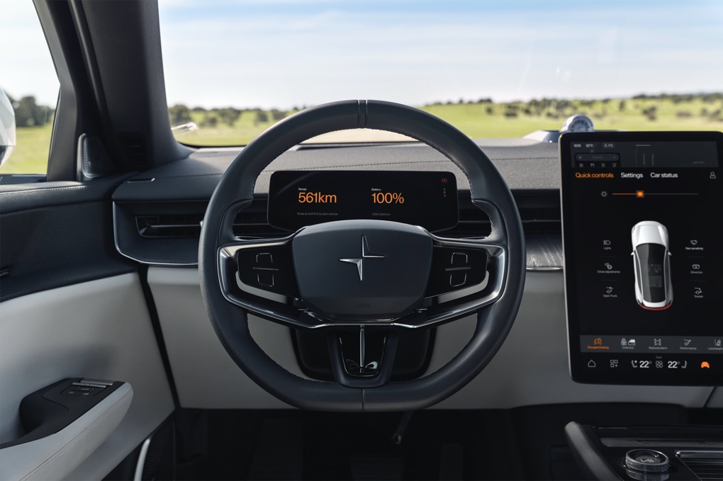 It's a big car – 4.9m long which is about the same as a Land Rover Discovery. But it’s only 1.6 metres tall, which is less than a Volkswagen ID.4. It makes the Polestar look very squished for an SUV – almost like a picture on your computer at the wrong setting.