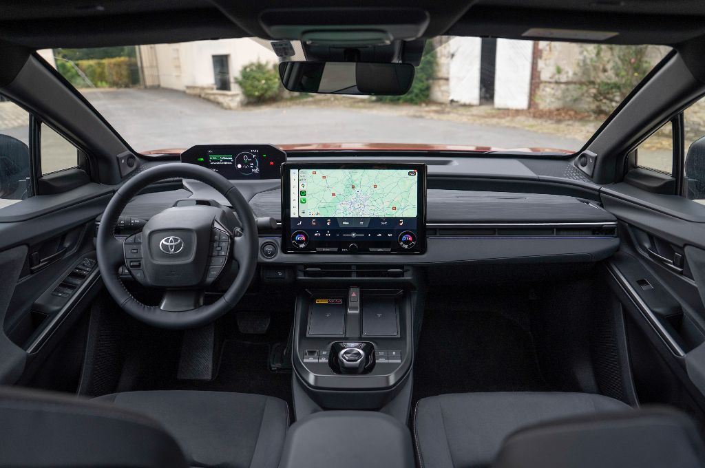 The interior of the C-HR+ does feel a little bit like an updated version of the bZ4X. You look over the small steering wheel to the digital driver’s readout, and there’s a big 14-incy central touchscreen for all your infotainment needs – including wireless Apple CarPlay and Android Auto. It’s a pretty decent system, too, complete with sensible air-con controls that are permanently visible, while the screen is quick to respond and has sharp graphics.