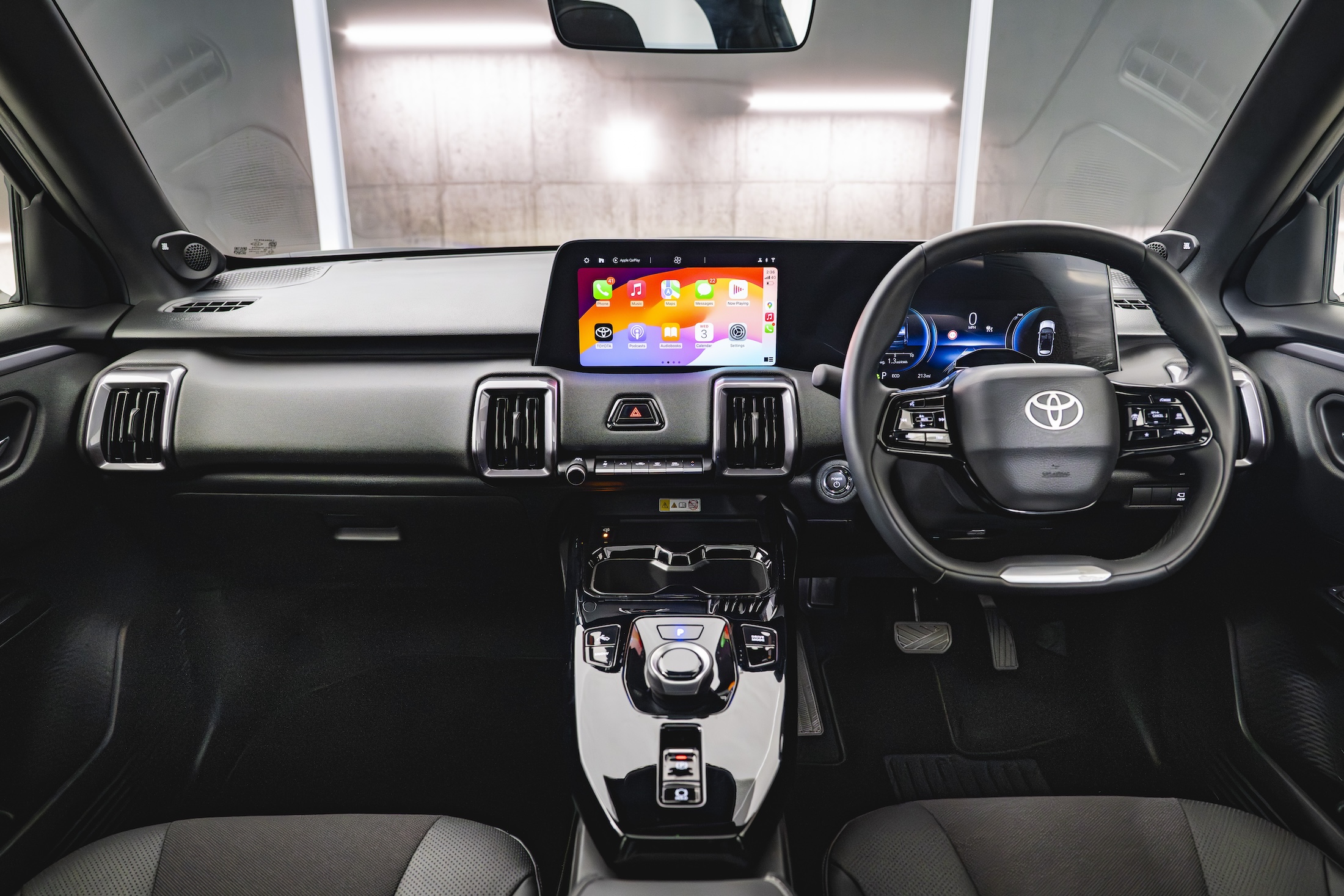 While Toyota has been able to give the Urban Cruiser a bit of a family look by changing the car's nose, it hasn't been able to pull off the same trick inside. Apart from a Toyota badge on the steering wheel and a picture of an Urban Cruiser on the infotainment system, the interior design is identical to the Suzuki's.